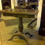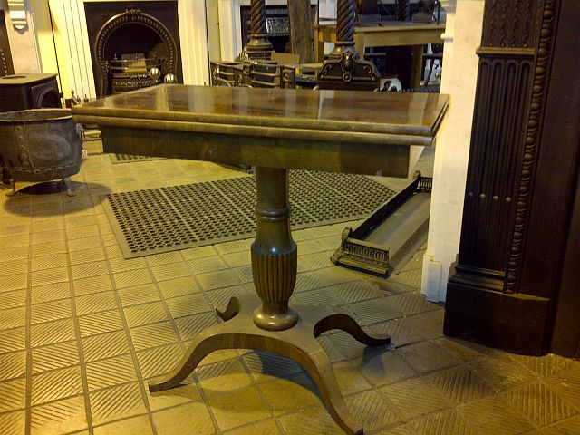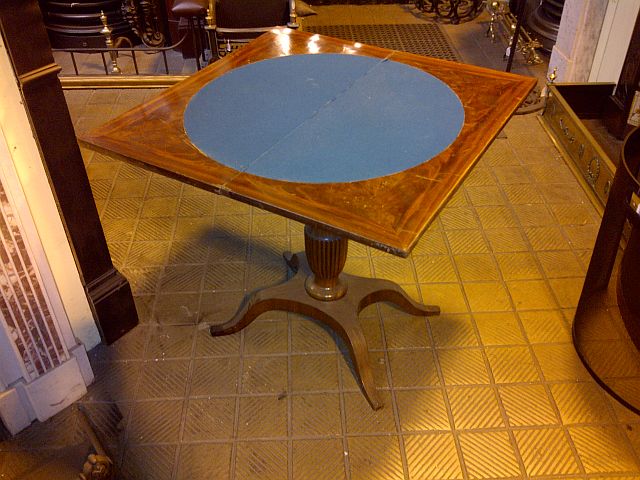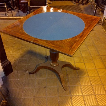English , circa late 1890’s card table in mahogany opens to a square surface for playing cards.
