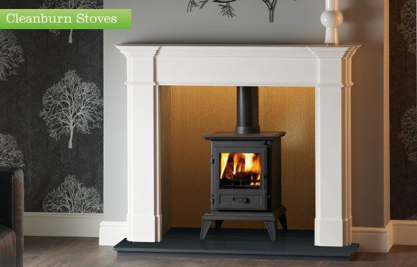 Reeded Fireboard chamber, Sirius 405 Classic Cleanburn Stove and honed granite hearth (slabbed for muti-fuel)