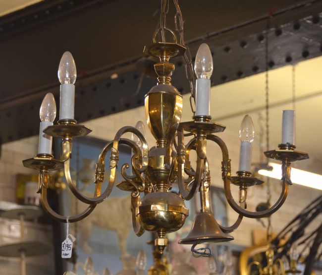 brass six light chandelier