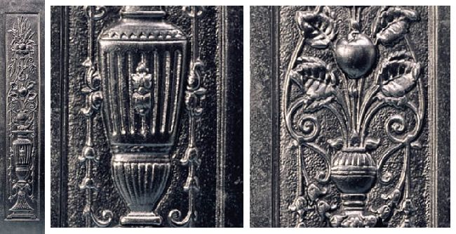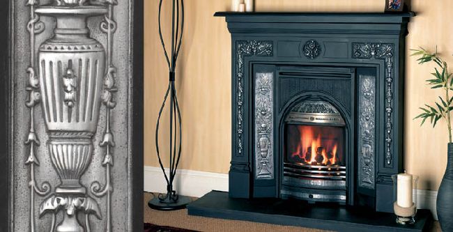 With their delicate patterns and pictures, these beautiful cast panels offer an elegant alternative to tile sets for selected classic Fronts, Inserts and Convectors. The two designs are available in Matt Black. The designs illustrated have been polished with Stovax Traditional Black Grate Polish. Additionally, the Urn Design is available in a polished finish.
