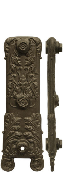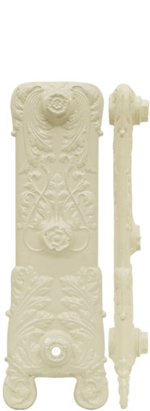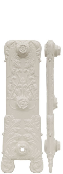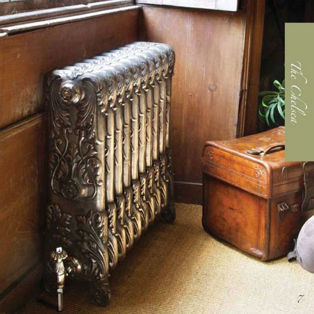 Dating from circa 1900, this elaborately decorated cast iron radiator design was originally commissioned for the Chelsea Barracks Officers’ Mess.