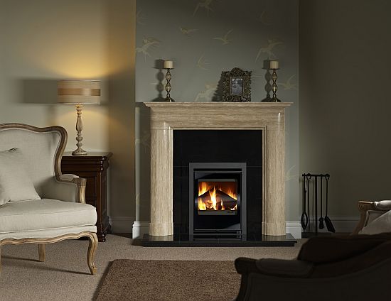 Polished granite slips and hearth, Sirius 450 Contemporary Inset Cleanburn stove.