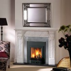 Capital Classic Plate Cast Iron (black back plate), Decorative open fronted gas fire, Capital Plate trim brushed steel & Capital Plate fret highlight, honed granite hearth