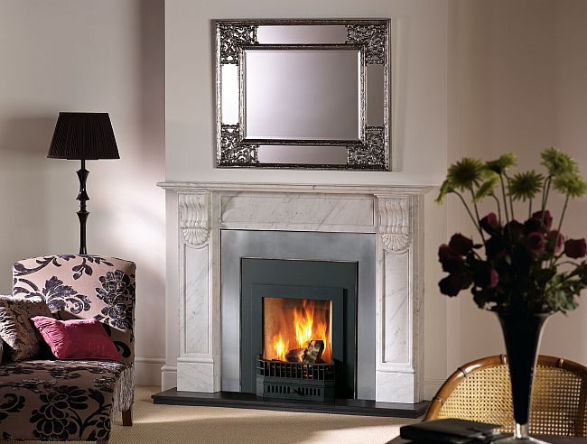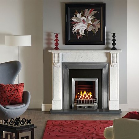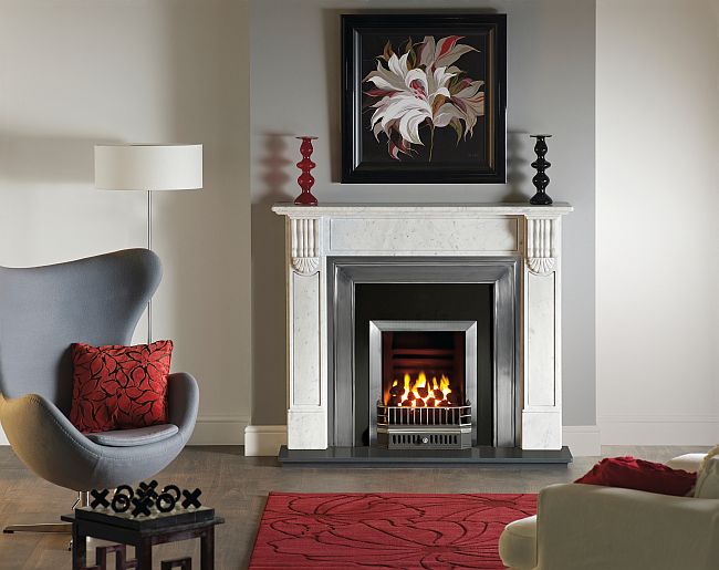 The Grosvenor 56″ and 60″ marble fireplace in Carrara Marble