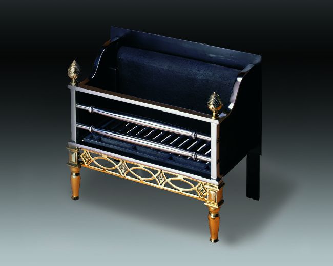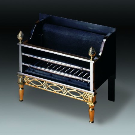 A straight front Fire Basket, available in brass or polished iron and steel finishes.