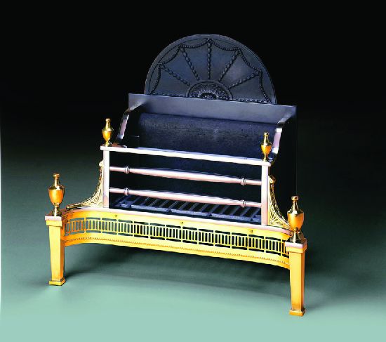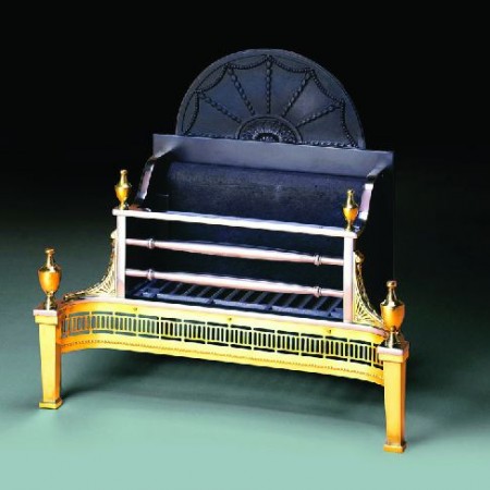 The Melbury fire basket is available with a choice of a straight or bowed front in brass or polished iron and steel finishes.