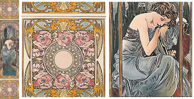 Alphonse Mucha (1860-1939) achieved his fame as a leading artist of the art nouveau movement. He specialised in portraits of elegant young women enhanced with delicate floral motifs.
