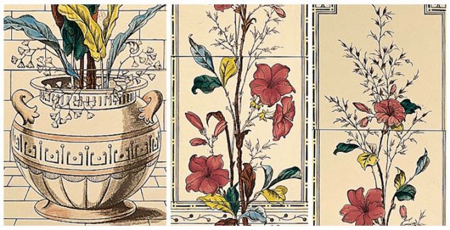 Set against a rich cream glaze, the decoration uses up to 18 separate colours in each design to make the tiles indistinguishable from hand-coloured originals.