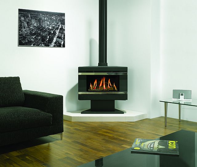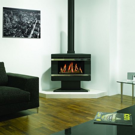 Alternatively, install it with the Riva Pedestal, this also raises your stove off the hearth and because of the design of the pedestal it can be placed in a corner.