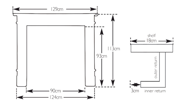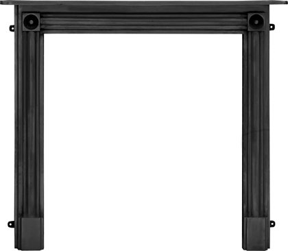 The Regent is a cast iron fireplace surround in the Regency style. The simple shape of this surround is decorated with elegantly classic straight line indentations, matched on all three sides and interrupted only by a bullseye pattern in the top corners.